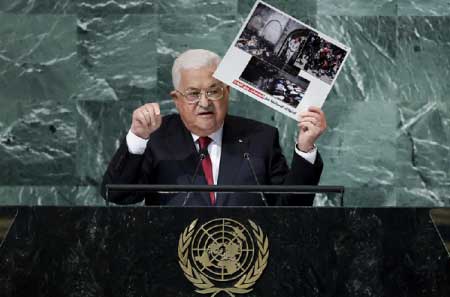 4- التأكيد على التزامه بالحل السلمي ورفض اللجوء للعنف والإرهاب، مع أن الأمر كان يتطلب الحديث ولو نظريا عن الفرق بين عنف وإرهاب جيش الاحتلال والمستوطنين من جانب ومقاومة الفلسطينيين في سياق الدفاع عن النفس من جانب آخر.