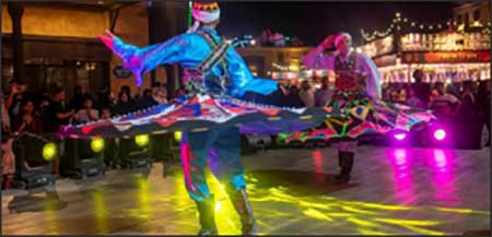 ويُقدم مسرح "ليالي القاهرة" عروضا متنوعة من الفلكلور الشعبي المصري، إلى جانب حزمة من العروض الاستعراضية التفاعلية المتجولة التي تُحاكي الثقافة المصرية وشخصياتها الأسطورية.