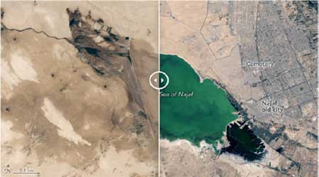 رصد موقع "NASA Earth" التغيير الكبير الذي حدث في محافظة النجف وسط العراق خلال عقدين من الزمن.